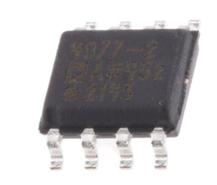 This is Dual Precision Op Amp 3.9MHz Push-Pull 8-Pin SOIC manufactured by Analog Devices. The manufacturer part number is ADA4077-2ARZ. While ±2.5 → ±15v is the typical dual supply voltage. Featuring a 7nv/√hz of typical input voltage noise density. Features 3.9mhz typical gain bandwidth. The given dimensions of the product include 5 x 4 x 1.5mm. The product is available in surface mount configuration. Furthermore, it has a typical 1.2v/µs of slew rate. It is a type of dual power supply. It comprises 2 channels per chip. Rail to rail options include no. It carries 1 khz of maximum operating frequency. In addition, the height is 1.5mm. Furthermore, the product is 4mm wide. Its accurate length is 5mm. The package is a sort of soic. Whereas, the minimum operating temperature of the product is -40 °c. It is a sort of a precision amplifier. Furthermore, its typical voltage gain includes 130 db. It has a maximum operating temperature of +125 °c. It contains 8 pins.
