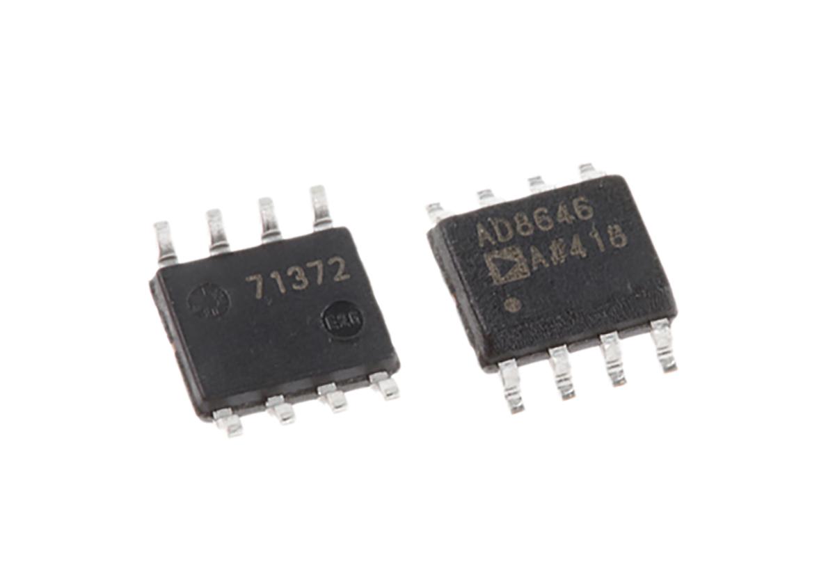 This is Op Amp RRIO 24MHz 3 V 5 V 8-Pin SOIC manufactured by Analog Devices. The manufacturer part number is AD8646ARZ. Featuring a 8nv/√hz of typical input voltage noise density. Features 24mhz typical gain bandwidth. The given dimensions of the product include 5 x 4 x 1.5mm. The product is available in surface mount configuration. Furthermore, it has a typical 11v/µs of slew rate. It is a type of single power supply. It comprises 2 channels per chip. Rail to rail options include rail to rail input/output. In addition, the height is 1.5mm. It has a typical single supply voltage of 3 v, 5 v. Furthermore, the product is 4mm wide. Its accurate length is 5mm. The package is a sort of soic. Whereas, the minimum operating temperature of the product is -40 °c. Furthermore, its typical voltage gain includes 116 db. It has a maximum operating temperature of +125 °c. It contains 8 pins.