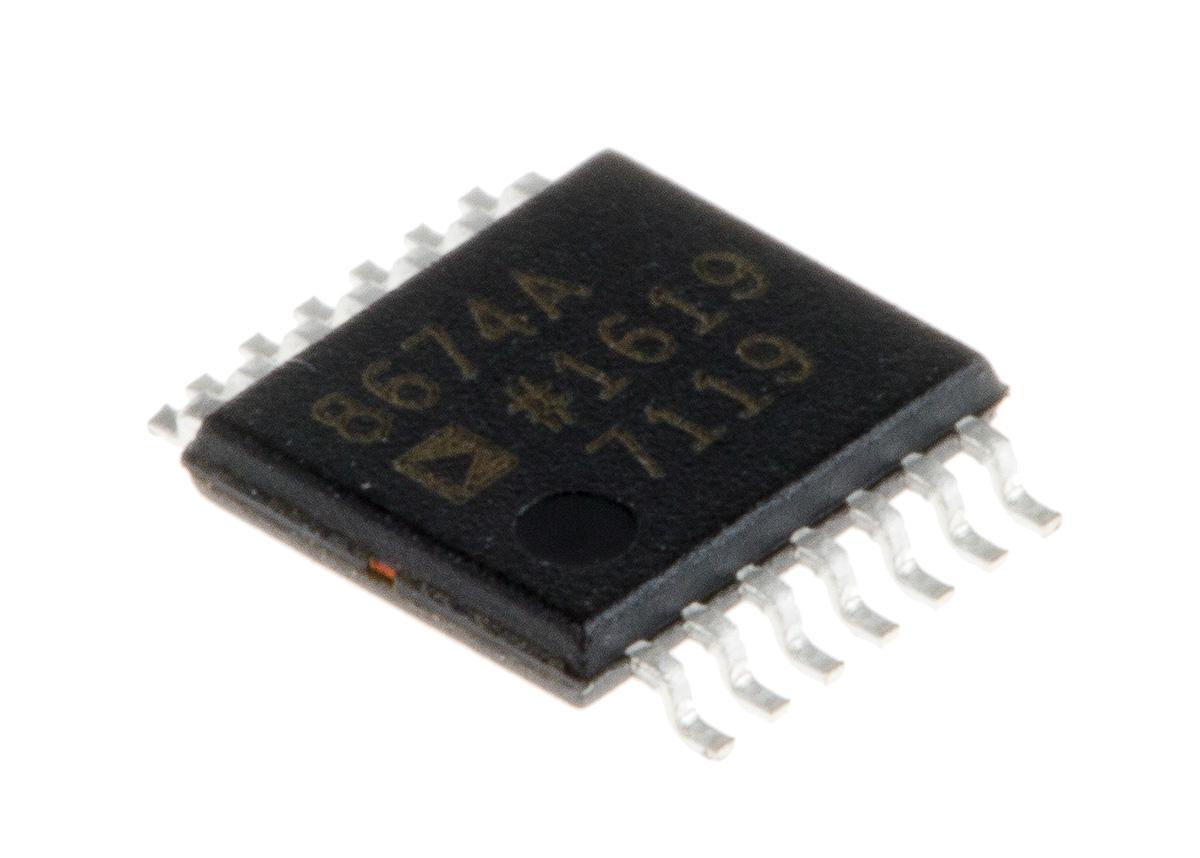 This is Op Amp 10MHz 14-Pin TSSOP manufactured by Analog Devices. The manufacturer part number is AD8674ARUZ. While ±12 v, ±9 v is the typical dual supply voltage. Featuring a 2.8nv/√hz of typical input voltage noise density. Features 10mhz typical gain bandwidth. The given dimensions of the product include 5 x 4.4 x 1mm. The product is available in surface mount configuration. Furthermore, it has a typical 4v/µs of slew rate. It is a type of dual power supply. It comprises 4 channels per chip. Rail to rail options include no. In addition, the height is 1mm. Furthermore, the product is 4.4mm wide. Its accurate length is 5mm. The package is a sort of tssop. Whereas, the minimum operating temperature of the product is -40 °c. Furthermore, its typical voltage gain includes 135.6 db. It has a maximum operating temperature of +85 °c. It contains 14 pins.