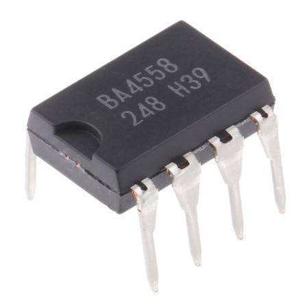 This is Dual Op Amp 8-Pin PDIP manufactured by ROHM. The manufacturer part number is BA4558. The given dimensions of the product include 9.3 x 6.5 x 2.59mm. The product is available in through hole configuration. Furthermore, it has a typical 1v/µs of slew rate. It is a type of dual power supply. It comprises 2 channels per chip. Rail to rail options include no. In addition, the height is 2.59mm. Furthermore, the product is 6.5mm wide. Its accurate length is 9.3mm. The package is a sort of pdip. Whereas, the minimum operating temperature of the product is -40 °c. Furthermore, its typical voltage gain includes 100 db. It has a maximum operating temperature of +85 °c. It contains 8 pins.