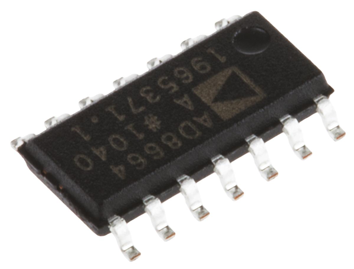 This is Op Amp RRO 4MHz 6 → 15 V 14-Pin SOIC manufactured by Analog Devices. The manufacturer part number is AD8664ARZ. Featuring a 12nv/√hz of typical input voltage noise density. Features 4mhz typical gain bandwidth. The given dimensions of the product include 8.75 x 4 x 1.5mm. The product is available in surface mount configuration. Furthermore, it has a typical 3.5v/µs of slew rate. It is a type of single power supply. It comprises 4 channels per chip. Rail to rail options include rail to rail output. In addition, the height is 1.5mm. It has a typical single supply voltage of 6 → 15 v. Furthermore, the product is 4mm wide. Its accurate length is 8.75mm. The package is a sort of soic. Whereas, the minimum operating temperature of the product is -40 °c. Furthermore, its typical voltage gain includes 107 db. It has a maximum operating temperature of +125 °c. It contains 14 pins.