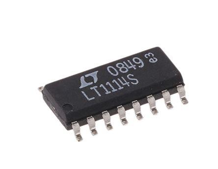 This is Op Amp manufactured by Linear Technology. The manufacturer part number is LT1114S#PBF. While ±12 v, ±15 v, ±18 v, ±3 v, ±5 v, ±9 v is the typical dual supply voltage. The given dimensions of the product include 10.01 x 3.99 x 1.48mm. The product is available in surface mount configuration. Furthermore, it has a typical 0.27v/µs of slew rate. It is a type of dual power supply. It comprises 4 channels per chip. Rail to rail options include no. In addition, the height is 1.48mm. Furthermore, the product is 3.99mm wide. Its accurate length is 10.01mm. The package is a sort of soic. Whereas, the minimum operating temperature of the product is -40 °c. Furthermore, its typical voltage gain includes 132 db. It has a maximum operating temperature of +85 °c. It contains 16 pins.