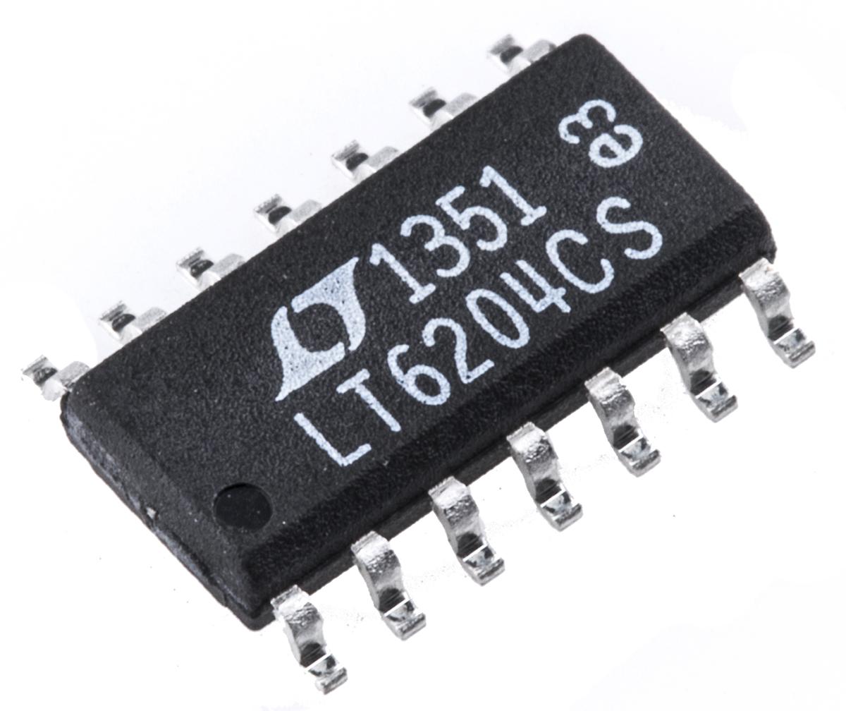 This is Linear Technology Op Amp RRIO 90MHz 3 → 12 V 14-Pin SOIC manufactured by Analog Devices. The manufacturer part number is LT6204CS#PBF. While ±3 v, ±5 v is the typical dual supply voltage. Featuring a 2.9nv/√hz of typical input voltage noise density. Features 90mhz typical gain bandwidth. The given dimensions of the product include 8.74 x 3.99 x 1.48mm. The product is available in surface mount configuration. Furthermore, it has a typical 24v/µs of slew rate. It is a type of dual, single power supply. It comprises 4 channels per chip. Rail to rail options include rail to rail input/output. In addition, the height is 1.48mm. It has a typical single supply voltage of 3 → 12 v. Furthermore, the product is 3.99mm wide. Its accurate length is 8.74mm. The package is a sort of soic. Whereas, the minimum operating temperature of the product is -40 °c. It is a sort of a high speed, low noise amplifier. Furthermore, its typical voltage gain includes 97 db. It has a maximum operating temperature of +85 °c. It contains 14 pins.