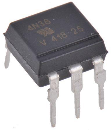 This is DC Input Phototransistor Output Optocoupler Through Hole 6-Pin DIP manufactured by Vishay. The manufacturer part number is 4N38. It also carries 1.5v of maximum forward voltage. Its output device includes phototransistor. It has 5000 vrms isolation voltage. The product is available in through hole configuration. It has a typical 10µs rise time . It has a maximum 30% current transfer ratio . Its input is of dc type . It is comprised of 6 pins. It is supplied with 1 channels. The package is a sort of dip. While its maximum input current includes 60 ma. It has a typical 10µs fall time .