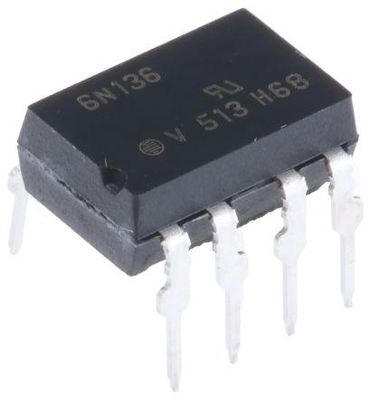 This is DC Input Transistor Output Optocoupler Through Hole 8-Pin DIP manufactured by Vishay. The manufacturer part number is 6N136. It also carries 1.9v of maximum forward voltage. Its output device includes transistor. It has 5300 vrms isolation voltage. The product is available in through hole configuration. The product 6n136, is a highly preferred choice for users. It has a maximum 35% current transfer ratio . Its input is of dc type . It is comprised of 8 pins. It is supplied with 1 channels. The package is a sort of dip. While its maximum input current includes 25 ma.
