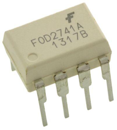 This is Fairchild DC Input Transistor Output Optocoupler Through Hole 8-Pin PDIP-W manufactured by Fairchild Semiconductor. The manufacturer part number is FOD2741A. It also carries 1.5v of maximum forward voltage. Its output device includes transistor. It has 5000 v ac isolation voltage. The product is available in through hole configuration. In addition, it has a minimum 100 % current transfer ratio . It has a maximum 200% current transfer ratio . Its input is of dc type . It is comprised of 8 pins. It is supplied with 1 channels. The package is a sort of pdip-w. While its maximum input current includes 20 ma.