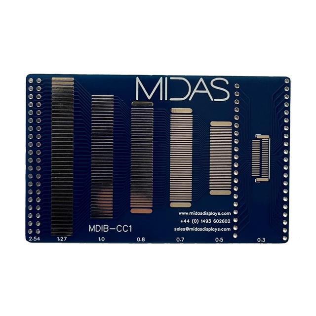 This is manufactured by Midas Displays. The manufacturer part number is MDIB-CC1. It is assigned with possible HTSUS value of 9013.90.1000. The product mcib, is a highly preferred choice for users. The product is rohs compliant. It is a type of interconnect board accessory. In addition, it is reach unaffected. Its typical moisture sensitivity level is not applicable. In addition, tray is the available packaging type of the product. The product is suitable for use with tft / lcd displays. The midas displays's product offers user-desired applications. The product is designated with the ear99 code number.