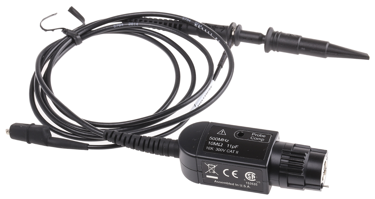 This is Oscilloscope Probe Probe Type: Passive Voltage 500MHz manufactured by Tektronix. The manufacturer part number is P5050B. The probe is basically a passive probe. Its attenuation is about 1:10 . While it has p5050b of model number. bnc Connector type offer robust functionality. It provides robust safety and is complied with cat ii 300v safety category. Has 500mhz bandwidth.