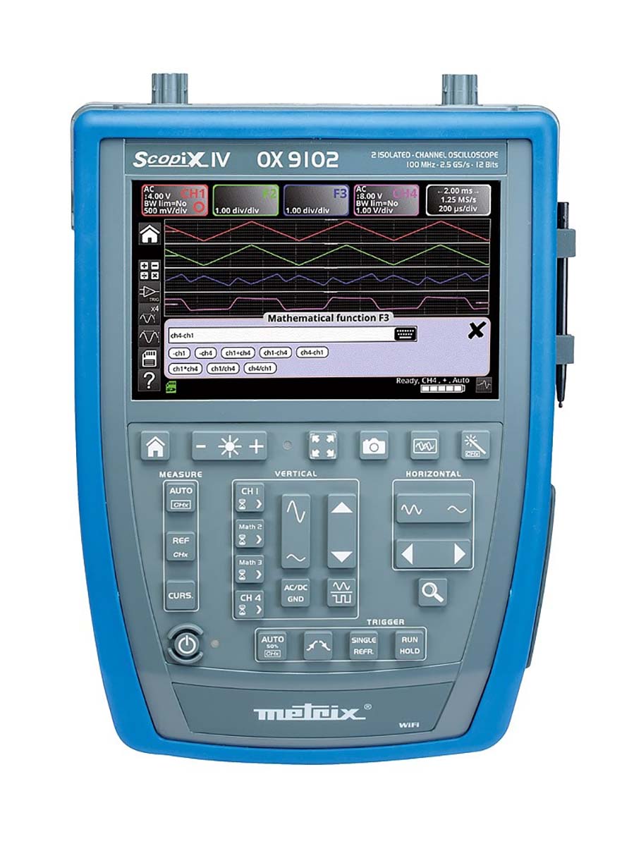 This is Digital Oscilloscope Portable 2 Channels 100MHz manufactured by Metrix. The manufacturer part number is OX9102. Moreover, its maximum time base is 200s/div . Moreover, the product gets power from mains, battery. Whereas, its minimum time base is 1ns/div . Furthermore, the product is 66.2 mm wide. Its battery life is about 8h . It includes a handheld type oscilloscope . It is supplied with 2 channels. Furthermore, it has a minimum 2.5mv/div vertical sensitivity . This lithium-ion battery is comparatively much efficient than common batteries. oscilloscope is a versatile product designed to provide user-defined applications. It screen is about 177.8 mm in size . Moreover, its safety category level is cat iii . The product comes in 210.6mm depth. Moreover, it has 100per sec waveform refresh rate . It is a type of ethernet, wifi, usb interface. Moreover, it has a 100kpts memory depth . It has a maximum 200v/div vertical sensitivity . It features a remarkable tft lcd display. Its vertical resolution is approximately 12 bit . The product scopix iv, is a highly preferred choice for users. It has an oscilloscope of digital storage form . Its safety category voltage is 600v . In addition, the height is 292.5mm. Has 100mhz bandwidth. Whereas, the rise time is 3.5ns .