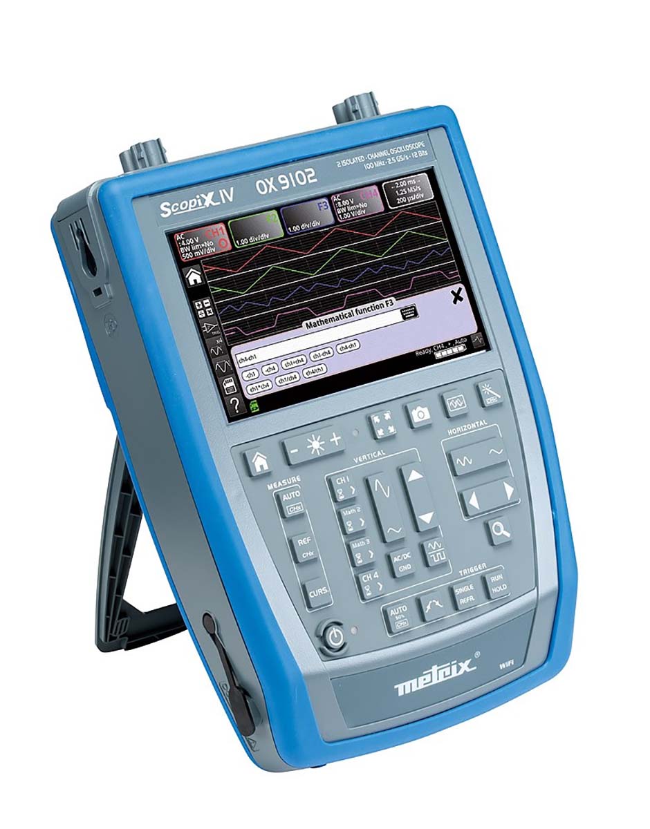 This is Digital Oscilloscope Portable 2 Channels 100MHz manufactured by Metrix. The manufacturer part number is OX9102. The given dimensions of the product include 292.5 x 210.6 x 66.2mm. Moreover, the product gets power from battery, mains. Whereas, its minimum time base is 1ns/div . Its battery life is about 8 h . It includes a handheld type oscilloscope . Moreover, its maximum time base is 200s/div . It is digital . However, its sample rate random 100 gsps . Furthermore, it has a minimum 2.5mv/div vertical sensitivity . It has 8000points/ch record length . This li-ion battery is comparatively much efficient than common batteries. It screen is about 7in in size . Moreover, it contains 2 analogue channels . A bespoke product is ethernet, usb, wifi, μsd interface. It is calibrated rscal . Moreover, it has a 100kpts memory depth . It has a maximum 200v/div vertical sensitivity . It features a remarkable tft lcd display. The typical product's weight is 2.1kg. Its vertical resolution is approximately 12 bit . The product scopix iv, is a highly preferred choice for users. It has an oscilloscope of digital storage form . It provides robust safety and is complied with cat iii 600v safety category. Has 100mhz bandwidth. Moreover, it has 100 waveform refresh rate . Whereas, the rise time is 3.5ns .