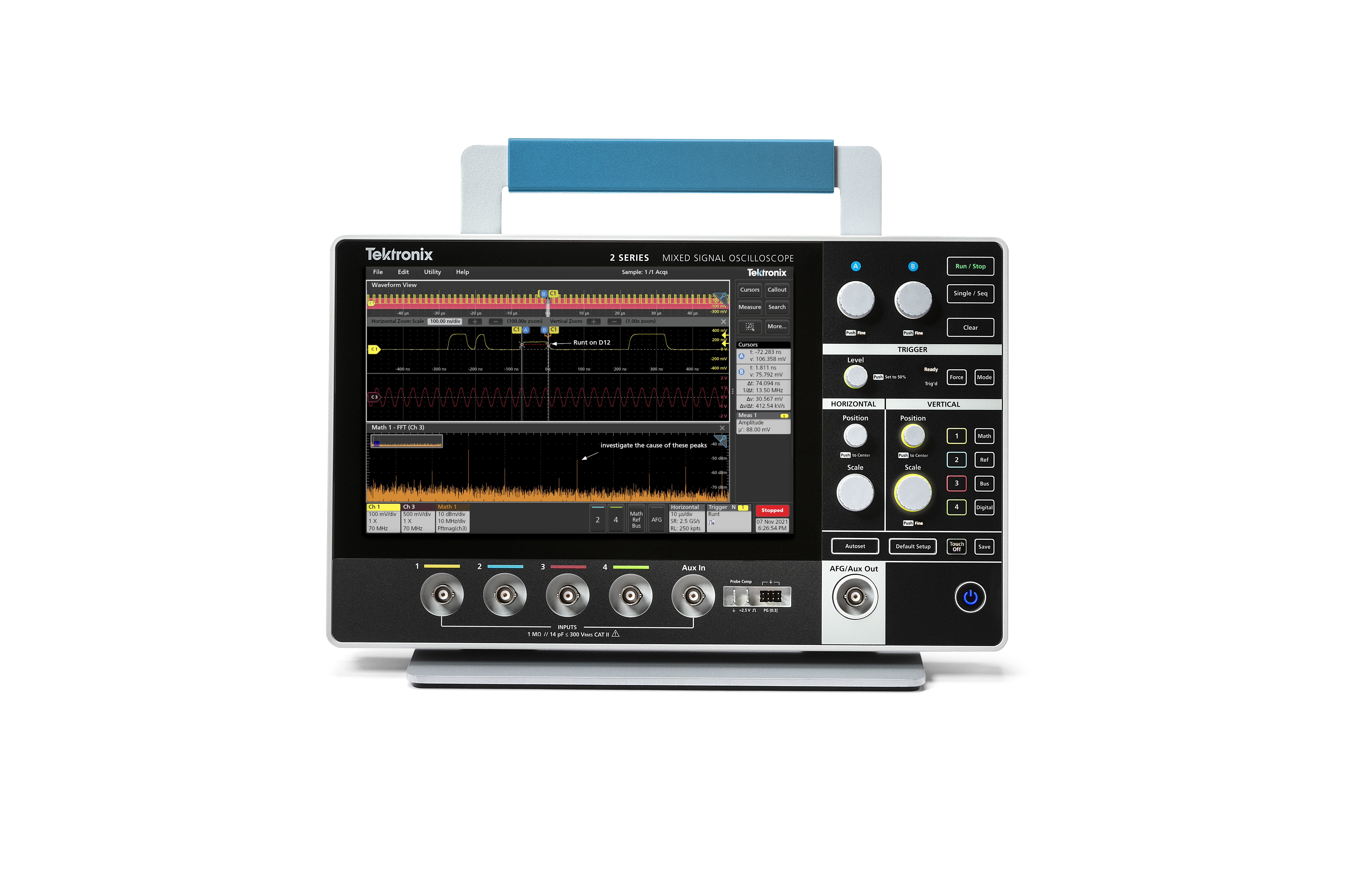 This is MSO24 Series 100MHz Mixed Signal Mixed Signal Oscilloscope 4 Analogue Channels 16 Digital Channels manufactured by Tektronix. The manufacturer part number is MSO24 2-BW-100 2-MSO 2-ULTIMATE R3. It includes a mixed signal type oscilloscope . The product mso24, is a highly preferred choice for users. Has 100mhz bandwidth. Moreover, it contains 4 analogue channels . It has 16 digital channels .