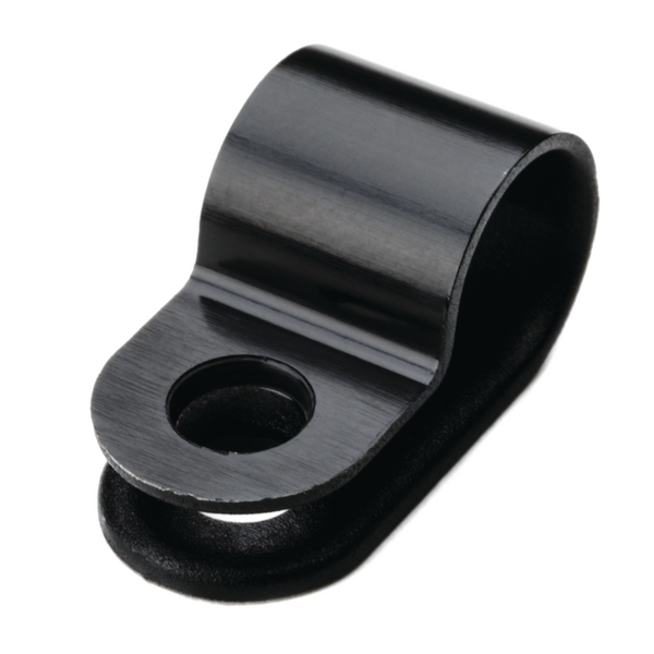 HP Plastic P clips Manufactured from Polyamide, these P clips offer good temperature resistance and are very strong. The clips are able to secure cables of various sizes by offering a range of fixing holes — this feature means users do not have to stock a large range of clips.,For permanent or semi-permanent cable fixings. Their light weight makes them particularly suitable for use in the aerospace industry where minimising weight while retaining secure fixing is vitally important.