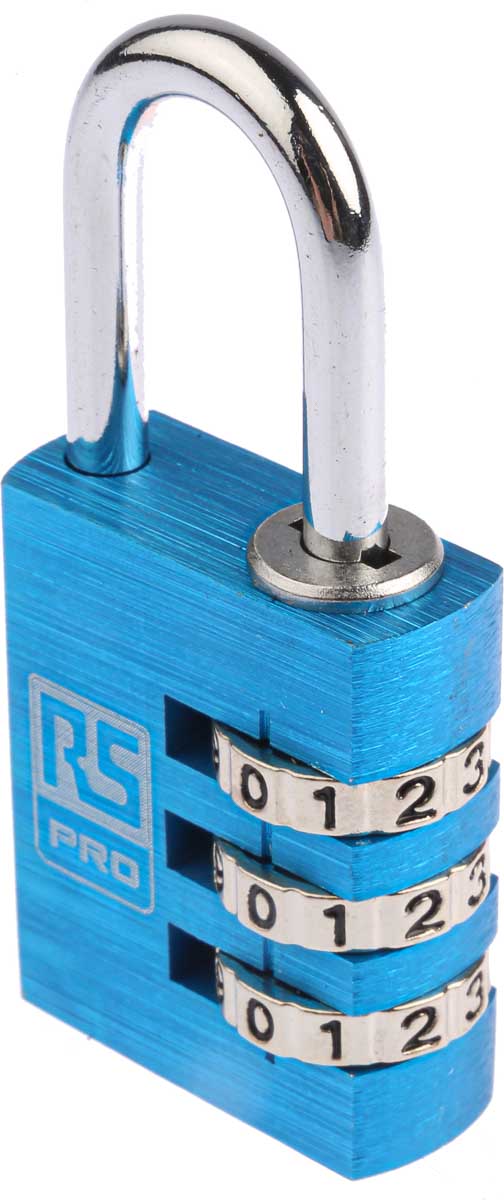 This is 30mm Aluminium Combination Weather Resistant Padlock manufactured by RS Pro. The manufacturer part number is 781-6048. Additionally, it is for indoor, outdoor . Its overall shackle diameter is approximately 5mm . It has a decent blue colour. The product is made from highly stable and reliable aluminium. It has a Bluetooth feature no . Its shackle is about 26mm in length . It contains 1 item per package . Additionally, it has a/an combination padlock type lock . Its overall body width is 30mm . Additionally, it has a weather proof nature no . It is keyed alike no .