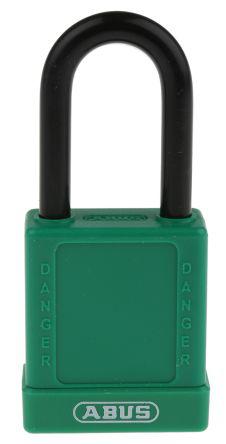 This is 38mm Aluminium Steel Key Safety Padlock manufactured by RS Pro. The manufacturer part number is 805-5480. Additionally, it is for indoor, outdoor . Its overall shackle diameter is approximately 6.5mm . It has a decent green colour. The product is made from highly stable and reliable aluminium, steel. Its shackle is about 38mm in length . It contains 1 item per package . Additionally, it has a/an key type lock . Its overall body width is 38mm . Additionally, it has a weather proof nature yes . It is keyed alike no .