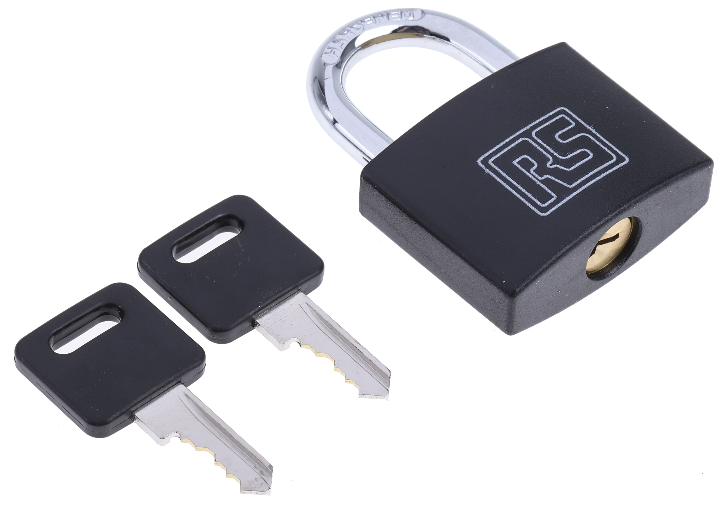 This is 43mm Brass with Key Padlock manufactured by RS Pro. The manufacturer part number is 827-4394. Additionally, it is for indoor & outdoor . Its overall shackle diameter is approximately 6mm . Its shackle is about 28mm in length . It has a decent black colour. The product is made from highly stable and reliable brass. It contains 1 per pack item per package . Furthermore, the product is 43 mm wide. Additionally, it has a/an key type lock . padlock is a versatile product designed to provide user-defined applications. It is keyed alike no .
