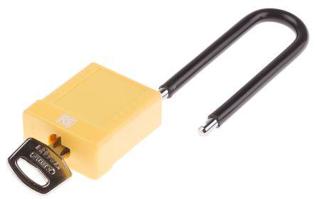 This is 38mm Aluminium Steel Key Safety Padlock manufactured by RS Pro. The manufacturer part number is 805-5503. Additionally, it is for indoor, outdoor . Its overall shackle diameter is approximately 6.5mm . It has a decent yellow colour. The product is made from highly stable and reliable aluminium, steel. Its shackle is about 76mm in length . It contains 1 item per package . Additionally, it has a/an key type lock . Its overall body width is 38mm . Additionally, it has a weather proof nature yes . It is keyed alike no .