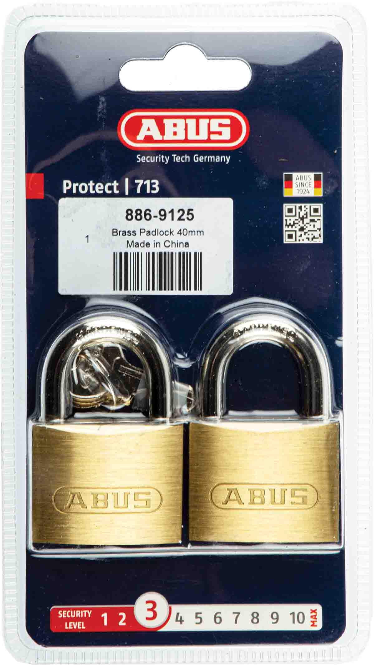 This is Abus Brass Key Padlock manufactured by ABUS. The manufacturer part number is 713/40HB63 C. Additionally, it is for indoor, outdoor . Its overall shackle diameter is approximately 6mm . It has a decent yellow colour. The product is made from highly stable and reliable brass. Its shackle is about 40mm in length . It contains 1 item per package . Additionally, it has a/an key type lock . Its overall body width is 39mm . Additionally, it has a weather proof nature yes . It is keyed alike no .