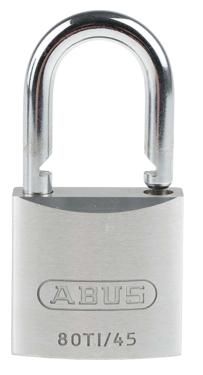 This is Abus 45mm Titalium Key Weatherproof Padlock manufactured by ABUS. The manufacturer part number is 80TI/45. Additionally, it is for indoor, outdoor . Its overall shackle diameter is approximately 8mm . It has a decent grey colour. The product is made from highly stable and reliable titanium. Its shackle is about 37.5mm in length . It contains 1 item per package . Additionally, it has a/an key type lock . Its overall body width is 45mm . Additionally, it has a weather proof nature yes . It is keyed alike no .