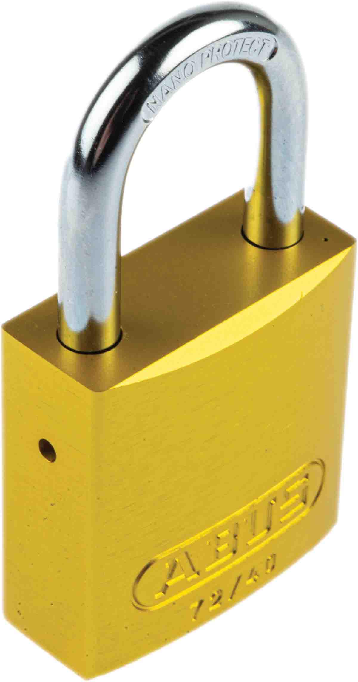 This is Abus 39mm Aluminium Steel Key Safety Padlock manufactured by ABUS. The manufacturer part number is 43603. Additionally, it is for indoor, outdoor . Its overall shackle diameter is approximately 6.5mm . It has a decent yellow colour. The product is made from highly stable and reliable aluminium, steel. Its shackle is about 34mm in length . It contains 1 item per package . Additionally, it has a/an key type lock . Its overall body width is 39mm . Additionally, it has a weather proof nature yes . It is keyed alike no .