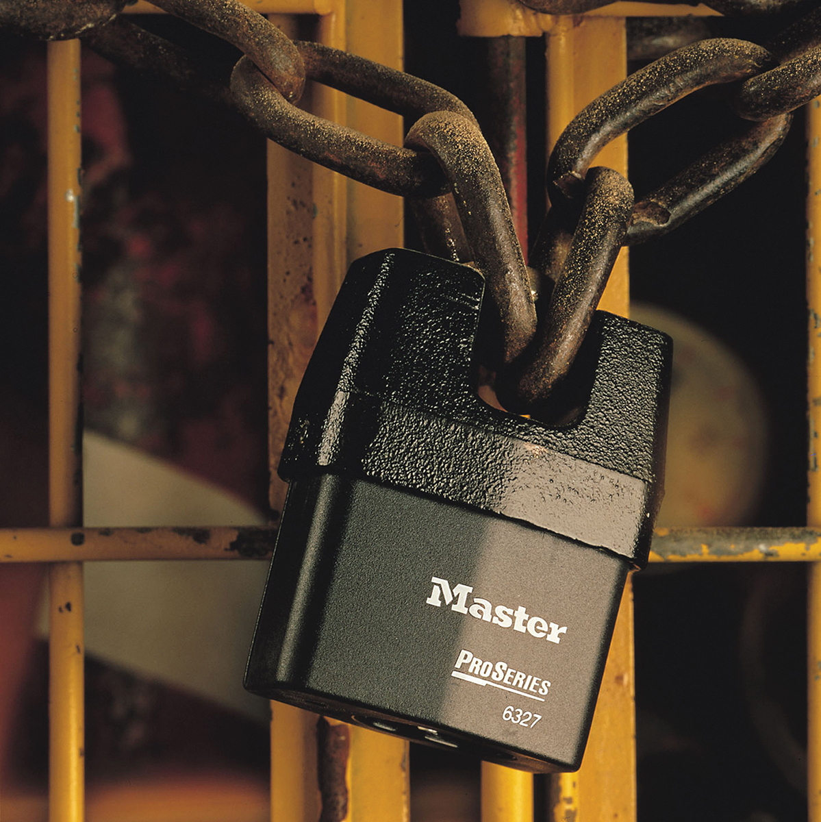 This is Pro Series padlock 6 pin cylinder - boro manufactured by Master Lock. The manufacturer part number is 6327EURD. Additionally, it is for indoor, outdoor . Its overall shackle diameter is approximately 11mm . It has a decent black colour. The product is made from highly stable and reliable stainless steel. Its shackle is about 18mm in length . It contains 4 item per package . Additionally, it has a/an key type lock . Its overall body width is 67mm . Additionally, it has a weather proof nature yes . It is keyed alike no .