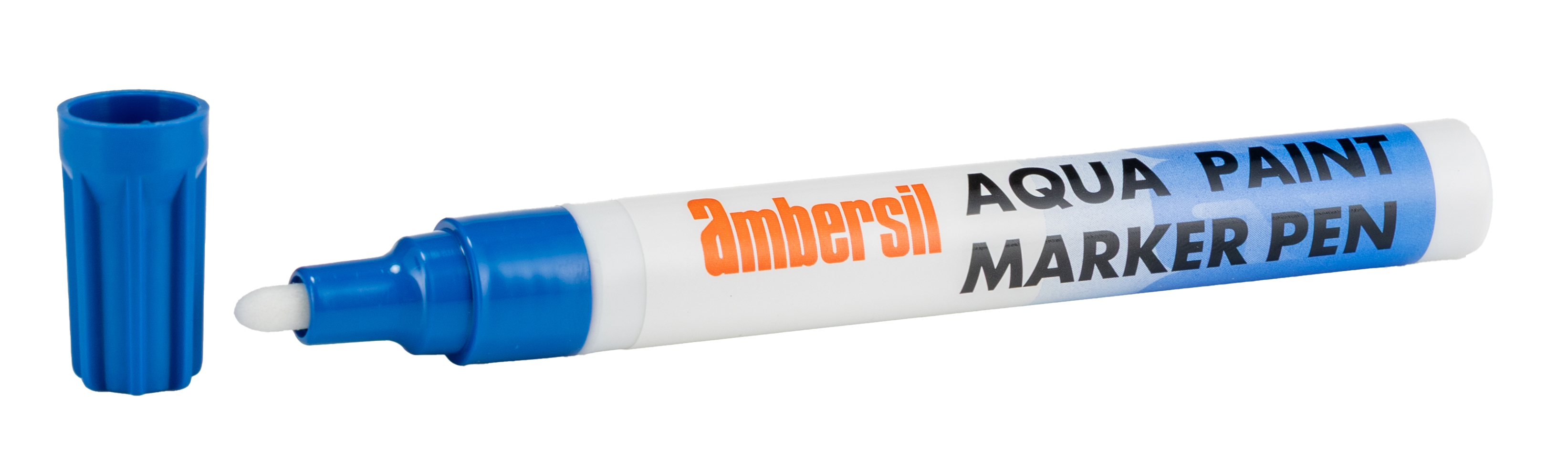 This is Blue Paint Marker Pen manufactured by Ambersil. The manufacturer part number is 32496-AB. It has compatible glass, metal, plastic materials . It is assigned with a trade name of aqua. The tip is medium in size. It has about 4.5mm point thickness . It has a/an blue colour paint .