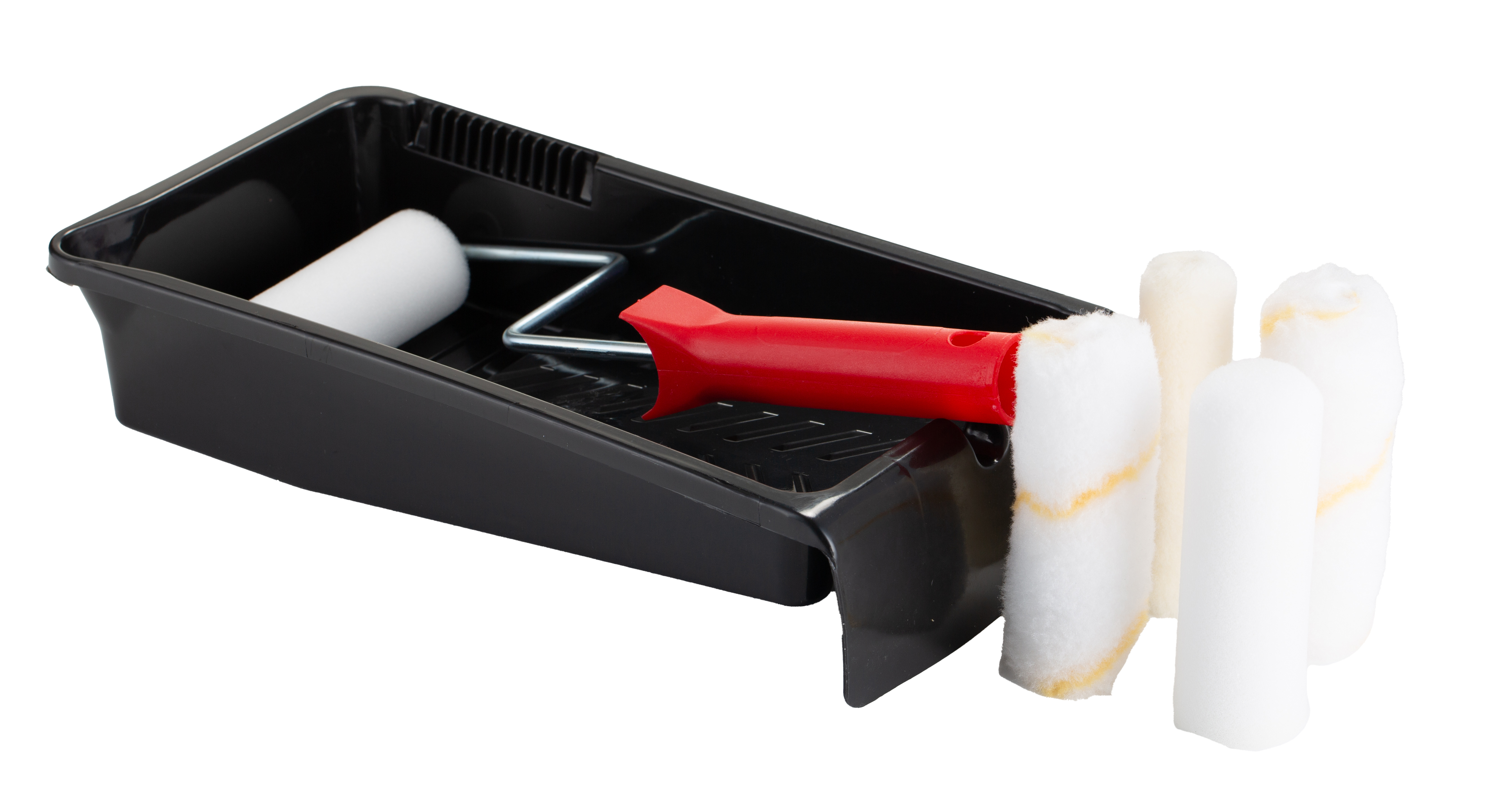 This is Paint Roller Kit includes: 2 x Acrylic Roller Sleeve 2 x Foam Roller Sleeve Mini Roller Cage Frame Plastic manufactured by RS PRO. The manufacturer part number is 287-8150. It comes in roller kit configuration. It includes a/an 2 x acrylic roller sleeve, 2 x foam roller sleeve, mini roller cage frame, plastic tray, velour roller sleeve kit .