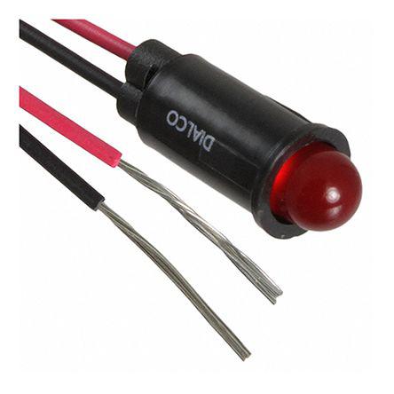 This is Prominent Indicator Panel Mount 6.32 → 6.4mm Mounting Hole Size Red LED Lead Wires Termination manufactured by Dialight. The manufacturer part number is 559-5101-027F. Regarding light output colour, it outputs red light colour. Its lamp is 5 mm in size . In addition, It features 6.4mm of mounting hole size. Moreover, the product has a nominal 2.1 v dc voltage rating. Furthermore, the bezel has a classic black colour. The given intensity of the product is 34 mcd. Its accurate length is 16.5 mm. The bezel features a prominent style. The product is designed with a lead wires termination. The product has a current rating of 25 ma. It is a type of led lamp. It is assigned with possible HTSUS value of 8541.41.0000. It is shipped in box package . In addition, it is reach info available upon request. Its typical moisture sensitivity level is not applicable. The product is designated with the ear99 code number.