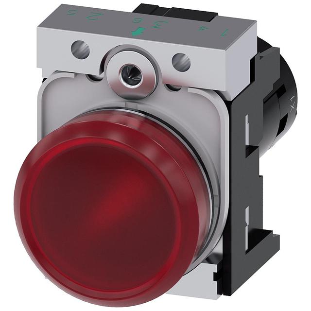This is manufactured by Siemens. The manufacturer part number is 3SU12516AB201AA0. It is rated with ac/dc. The product is rohs3 compliant. Moreover, it has screw terminal terminal style. On the other hand, 450 ~ 1120mcd is the millicandela rating of the bespoke product. It also has a 0.88" (22.30mm) dimensional features. It comes in led configuration. The product has a nice round shape. It comes in round with flat top lens style. In addition, it is reach unaffected. It has an attractive and classic red colour. It is shipped in box package . Its typical moisture sensitivity level is not applicable. The lens is red in colour. It is IP rated with ip66, ip67, ip69, ip69k, nema 1, 2, 3, 3r, 4, 4x, 12, 13. While its lens size is 22.00mm dia. The product is supplied with a diffused lens transparency. The product 3su1, is a highly preferred choice for users. It carries a 24v of voltage. Moreover, it corresponds to 3su1, a base product number of the product.