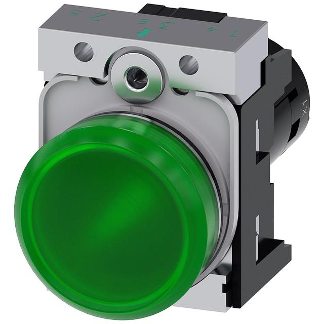 This is manufactured by Siemens. The manufacturer part number is 3SU12516AB401AA0. It is rated with ac/dc. The product is rohs compliant. Moreover, it has screw terminal terminal style. On the other hand, 900 ~ 1800mcd is the millicandela rating of the bespoke product. It also has a 0.88" (22.30mm) dimensional features. It comes in led configuration. The product has a nice round shape. It comes in round with flat top lens style. In addition, it is reach unaffected. It has an attractive and classic green colour. It is shipped in box package . Its typical moisture sensitivity level is not applicable. The lens is green in colour. It is IP rated with ip20, ip66, ip67, ip69, ip69k, nema 1, 2, 3, 3r, 4, 4x, 12, 13. While its lens size is 22.00mm dia. The product is supplied with a diffused lens transparency. The product 3su1, is a highly preferred choice for users. It carries a 24v of voltage. Moreover, it corresponds to 3su1, a base product number of the product.
