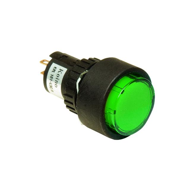 This is manufactured by KOINO. The manufacturer part number is KPL161-L1CG. It is rated with dc. It is assigned with possible HTSUS value of 8541.41.0000. The product is rohs non-compliant. Moreover, it has quick connect - 0.110" (2.8mm) terminal style. In addition, it is vendor undefined. Features a 20ma current in A. It also has a 0.63" (16.00mm) dimensional features. It comes in led configuration. The product has a nice round shape. It comes in round with flat top lens style. It has an attractive and classic green colour. The koino's product offers user-desired applications. Its typical moisture sensitivity level is not applicable. The lens is green in colour. It is IP rated with ip40. While its lens size is 25.00mm dia. The product k, is a highly preferred choice for users. In addition, bulk is the available packaging type of the product. It carries a 6v of voltage. The product is designated with the ear99 code number.