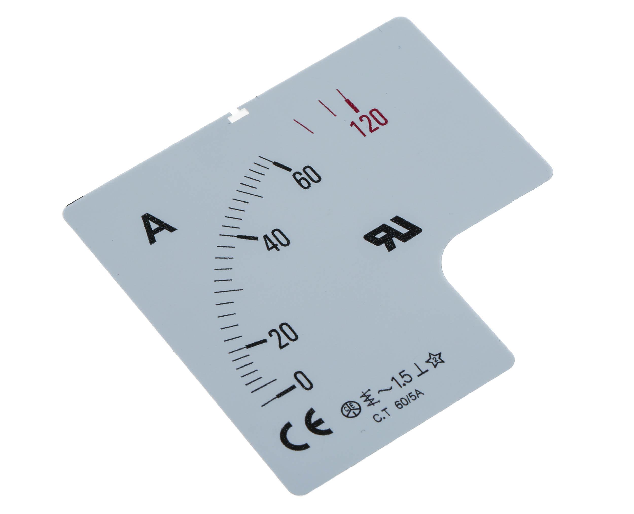 This is 60A Meter Scale SC72-60F2-90-RS for use with 72x72 Ammeter manufactured by RS Pro. The manufacturer part number is 901-0422. The product is highly suitable for 72 x 72 analogue panel ammeter. It is a type of 60a meter scale accessory.