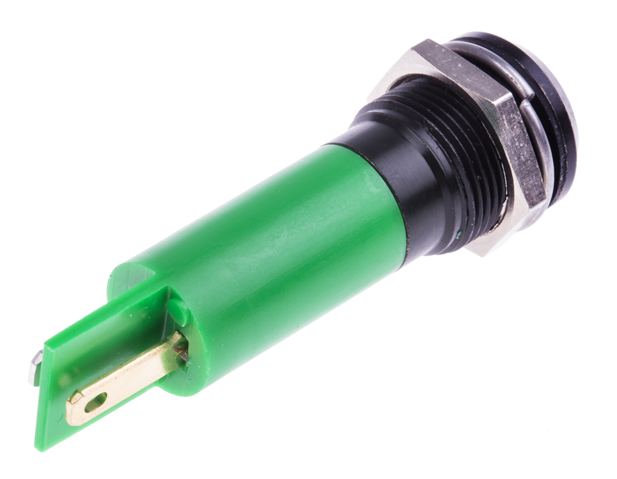This is Green LED Indicator 130 V ac 8 mm Lamp Size 12mm Mounting Hole Size IP67 manufactured by RS Pro. The manufacturer part number is 205-606. Regarding light output colour, it outputs green light colour. The product has a current rating of 6ma. In addition, It features 12mm of mounting hole size. It is IP rated with ip67. Furthermore, the bezel has a classic black colour. Moreover, the product has a nominal 130v ac voltage rating. The given intensity of the product is 400mcd. Its accurate length is 56mm. The bezel features a prominent style. It is a type of led lamp.