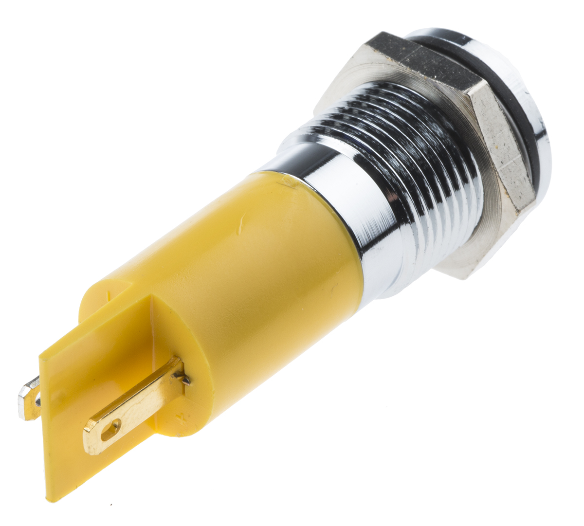 This is Yellow LED Indicator 24 V dc 10 mm Lamp Size 14mm Mounting Hole Size IP67 manufactured by RS Pro. The manufacturer part number is 703-8831. Regarding light output colour, it outputs yellow light colour. The product has a current rating of 20ma. The product is designed with a solder tab termination. In addition, It features 14mm of mounting hole size. It is IP rated with ip67. Furthermore, the bezel has a classic chrome colour. Moreover, the product has a nominal 24v dc voltage rating. Its accurate length is 35.6mm. The given intensity of the product is 4mcd. The bezel features a flush style. It is a type of led lamp.