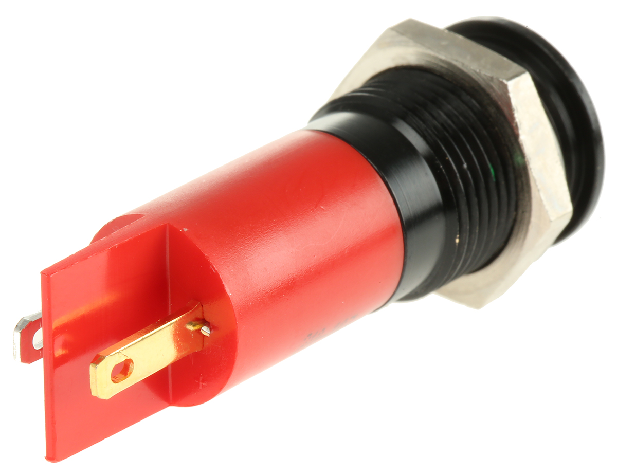 This is Prominent Indicator Panel Mount 14mm Mounting Hole Size Red LED Solder Tab Termination 10 mm Lamp Size 12 V dc manufactured by RS Pro. The manufacturer part number is 210-103. Regarding light output colour, it outputs red light colour. The product has a current rating of 20ma. In addition, It features 14mm of mounting hole size. Moreover, the product has a nominal 12v dc voltage rating. The given intensity of the product is 7500mcd. Its accurate length is 47mm. The bezel features a prominent style. The product is designed with a solder tab termination. It is a type of led lamp.