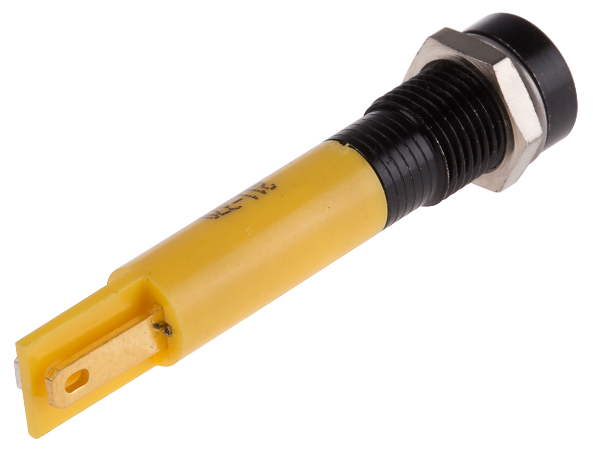 This is Yellow LED Indicator 24 V dc 5 mm Lamp Size 8mm Mounting Hole Size manufactured by RS Pro. The manufacturer part number is 211-370. Regarding light output colour, it outputs yellow light colour. The product has a current rating of 20ma. The product is designed with a solder tab termination. In addition, It features 8mm of mounting hole size. Moreover, the product has a nominal 24v dc voltage rating. Its accurate length is 34.8mm. The given intensity of the product is 40mcd. The bezel features a recessed style. It is a type of led lamp.
