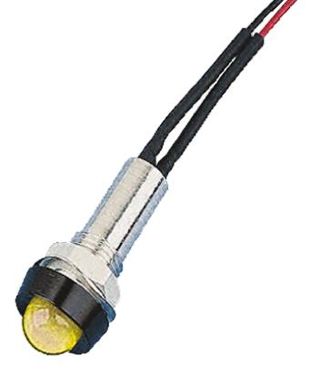 This is Prominent Indicator Panel Mount 8mm Mounting Hole Size Yellow LED Lead Wires Termination 110 V ac manufactured by Oxley. The manufacturer part number is STR/LH/8/110/FL30/YW. Regarding light output colour, it outputs yellow light colour. The product has a current rating of 5ma. In addition, It features 8mm of mounting hole size. It is IP rated with ip68. Furthermore, the bezel has a classic black colour. Moreover, the product has a nominal 110v ac voltage rating. The given intensity of the product is 3mcd. Its accurate length is 31mm. The bezel features a prominent style. The product is designed with a lead wires termination. It is a type of led lamp.