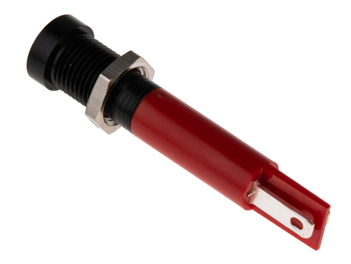 This is Red LED Indicator 24 V dc 5 mm Lamp Size 8mm Mounting Hole Size manufactured by RS Pro. The manufacturer part number is 207-876. Regarding light output colour, it outputs red light colour. The product has a current rating of 20ma. In addition, It features 8mm of mounting hole size. Moreover, the product has a nominal 24v dc voltage rating. The given intensity of the product is 10000mcd. Its accurate length is 34.8mm. The bezel features a recessed style. The product is designed with a solder tab termination. It is a type of led lamp.
