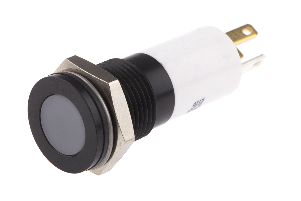 This is Flush Indicator Panel Mount 14mm Mounting Hole Size Red/Green/Yellow LED Solder Tab Termination 10 mm Lamp Size manufactured by RS Pro. The manufacturer part number is 703-8923. The product has a current rating of 20ma. The product is designed with a solder tab termination. In addition, It features 14mm of mounting hole size. It is IP rated with ip67. Moreover, the product has a nominal 24v dc voltage rating. Its accurate length is 35.6mm. The bezel features a flush style. It is a type of led lamp.