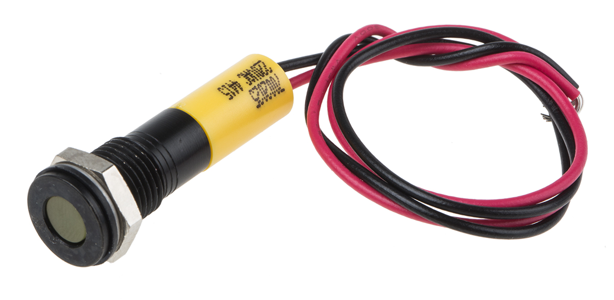 This is Yellow LED Indicator 220 V ac 5 mm Lamp Size 8mm Mounting Hole Size IP67 manufactured by RS Pro. The manufacturer part number is 700-2025. Regarding light output colour, it outputs yellow light colour. The product has a current rating of 20ma. In addition, It features 8mm of mounting hole size. It is IP rated with ip67. Moreover, the product has a nominal 220v ac voltage rating. The given intensity of the product is 6mcd. Its accurate length is 27.6mm. The bezel features a flush style. The product is designed with a lead wires termination. It is a type of led lamp.