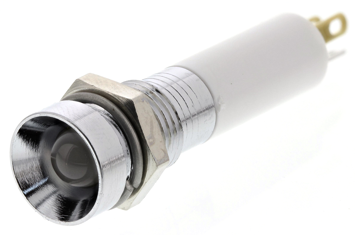 This is Green Red Yellow LED Indicator 12 V dc 5 mm Lamp Size 8mm Mounting Hole Size manufactured by RS Pro. The manufacturer part number is 207-400. Regarding light output colour, it outputs green, red, yellow light colour. Its lamp is 5 mm in size . In addition, It features 8mm of mounting hole size. The product is available in panel mount configuration. Moreover, the product has a nominal 12v dc voltage rating. Furthermore, the bezel has a classic chrome colour. The given intensity of the product is 60 mcd, 13 mcd, 15mcd. Its accurate length is 34.8mm. The bezel features a recessed style. The product is designed with a solder tab termination. The product has a current rating of 20ma. It is a type of led lamp.