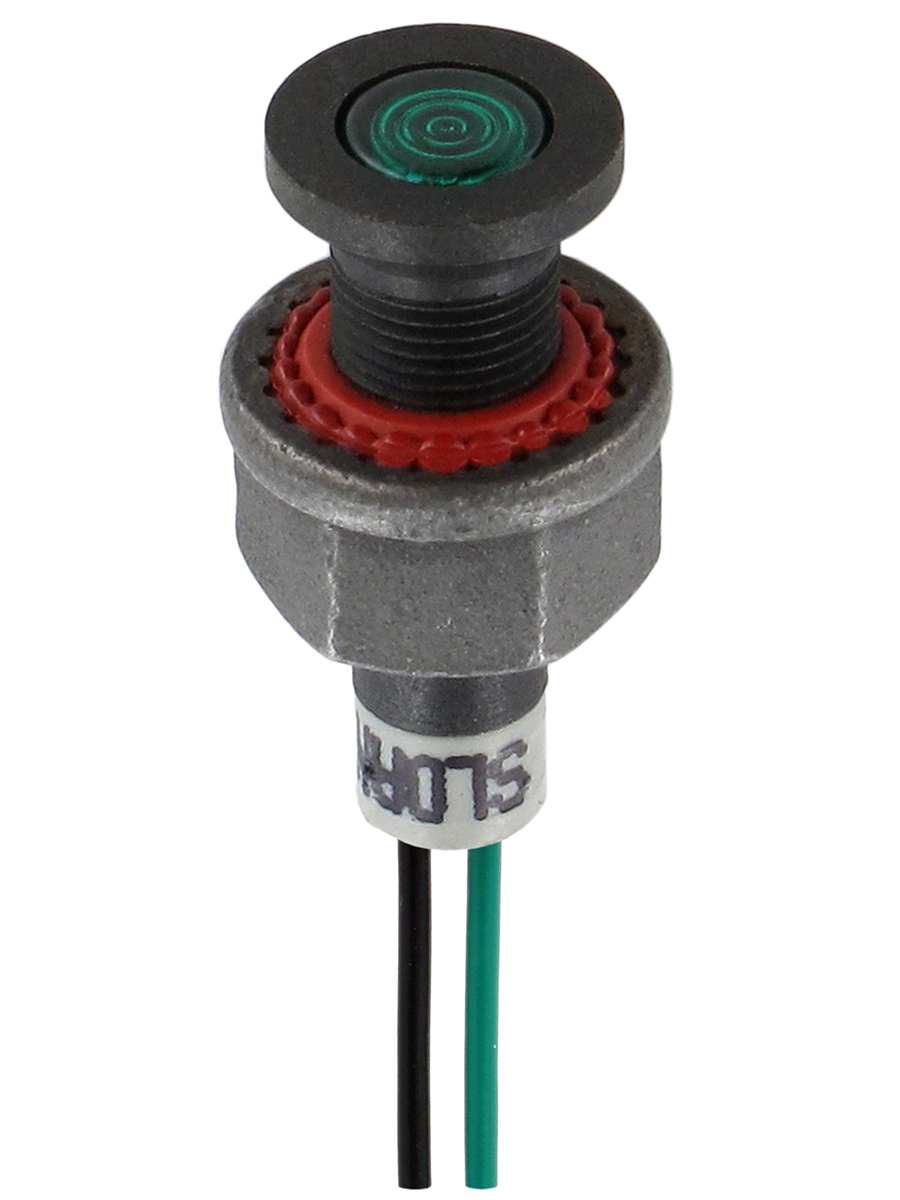 This is Green LED Indicator 24 V dc 3 mm Lamp Size 6.2mm Mounting Hole Size IP68 manufactured by Sloan. The manufacturer part number is 1888S1G1G51ND. Regarding light output colour, it outputs green light colour. Its lamp is 3 mm in size . In addition, It features 6.2mm of mounting hole size. It is IP rated with ip68. Moreover, the product has a nominal 24v dc voltage rating. The given intensity of the product is 10320mcd. Its accurate length is 21.6mm. The bezel features a recessed style. The product is designed with a lead wires termination. The product has a current rating of 20ma. It is a type of led lamp.