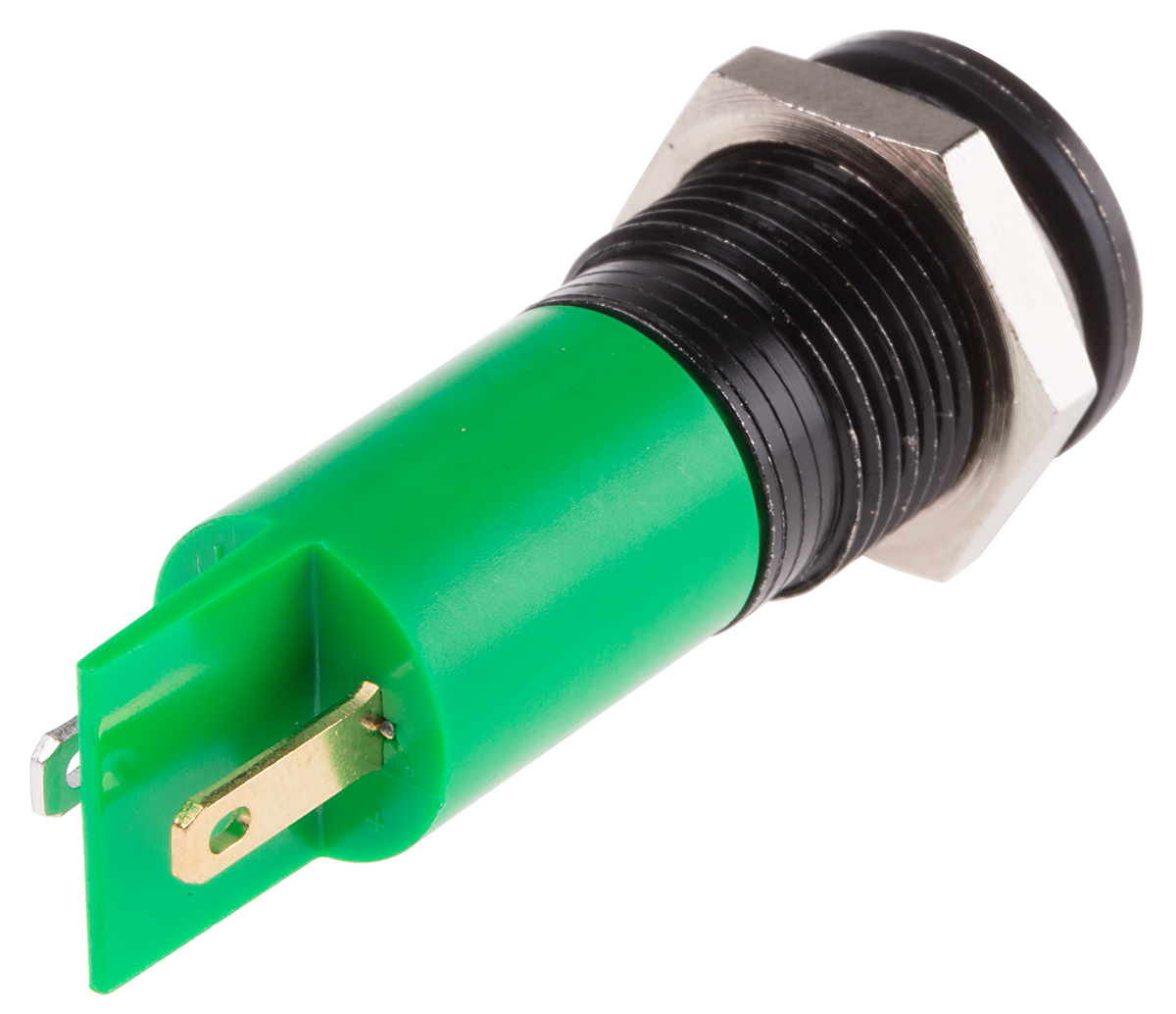 This is Prominent Indicator Panel Mount 14mm Mounting Hole Size Green LED Tab Termination 10 mm Lamp Size manufactured by RS Pro. The manufacturer part number is 205-448. Regarding light output colour, it outputs green light colour. The product has a current rating of 15 → 17ma. In addition, It features 14mm of mounting hole size. Moreover, the product has a nominal 24 → 36v dc voltage rating. Furthermore, the bezel has a classic black colour. The given intensity of the product is 60mcd. Its accurate length is 47mm. The bezel features a prominent style. It is a type of led lamp.
