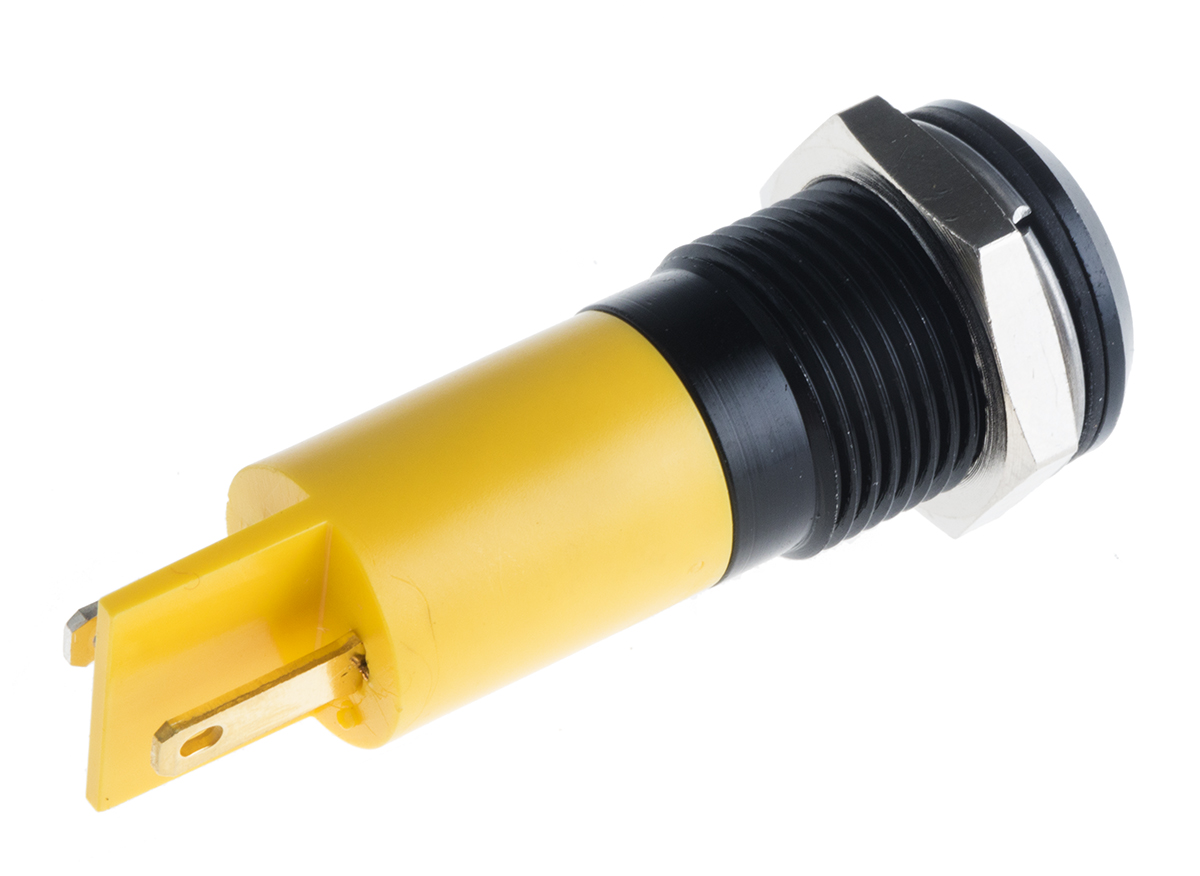 This is Prominent Indicator Panel Mount 14mm Mounting Hole Size Yellow LED Tab Termination 10 mm Lamp Size manufactured by RS Pro. The manufacturer part number is 205-454. Regarding light output colour, it outputs yellow light colour. The product has a current rating of 17ma. In addition, It features 14mm of mounting hole size. Moreover, the product has a nominal 24 → 36v dc voltage rating. Furthermore, the bezel has a classic black colour. The given intensity of the product is 50mcd. Its accurate length is 47mm. The bezel features a prominent style. It is a type of led lamp.