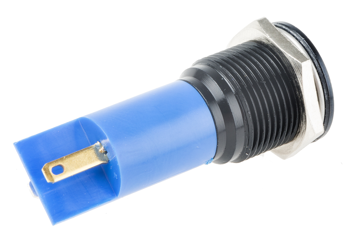 This is Prominent Indicator Panel Mount 16mm Mounting Hole Size Blue LED Solder Tab Termination 10 mm Lamp Size manufactured by RS Pro. The manufacturer part number is 205-662. Regarding light output colour, it outputs blue light colour. The product has a current rating of 3ma. In addition, It features 16mm of mounting hole size. It is IP rated with ip67. Moreover, the product has a nominal 115 v dc, 230v ac voltage rating. The given intensity of the product is 280mcd. Its accurate length is 62.5mm. The bezel features a prominent style. The product is designed with a solder tab termination. It is a type of led lamp.