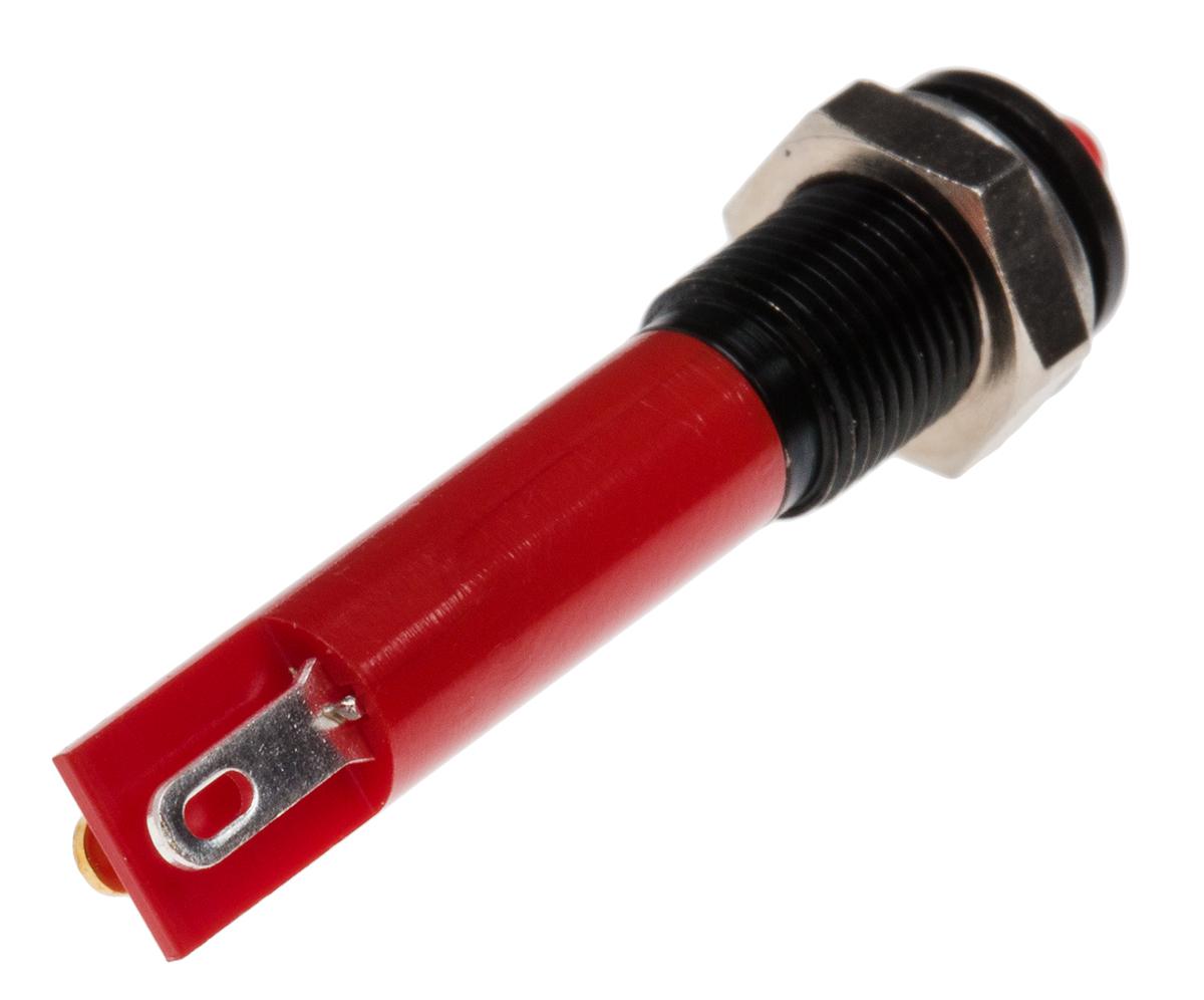 This is Prominent Indicator Panel Mount 6mm Mounting Hole Size Red LED Solder Tab Termination 3 mm Lamp Size 12 V dc manufactured by RS Pro. The manufacturer part number is 206-003. Regarding light output colour, it outputs red light colour. Its lamp is 3 mm in size . In addition, It features 6mm of mounting hole size. The product is available in panel mount configuration. Moreover, the product has a nominal 12v dc voltage rating. Furthermore, the bezel has a classic black colour. The given intensity of the product is 1000mcd. Its accurate length is 34.4mm. The bezel features a prominent style. The product is designed with a solder tab termination. The product has a current rating of 20ma. It is a type of led lamp.