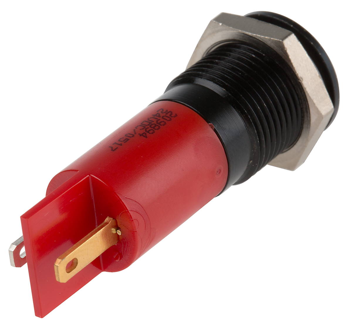 This is Red Flashing LED Indicator 24 V dc 10 mm Lamp Size 14mm Mounting Hole Size manufactured by RS Pro. The manufacturer part number is 209-894. Regarding light output colour, it outputs red light colour. The product has a current rating of 20ma. In addition, It features 14mm of mounting hole size. Moreover, the product has a nominal 24v dc voltage rating. The given intensity of the product is 80mcd. Its accurate length is 47mm. The bezel features a prominent style. The product is designed with a solder tab termination. It is a type of flashing led lamp.
