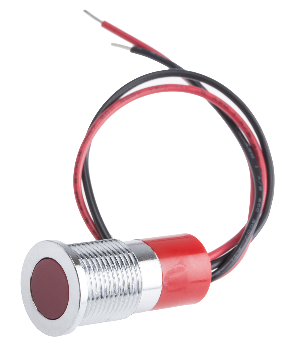This is Red LED Indicator 24 V dc 10 mm Lamp Size 14mm Mounting Hole Size IP67 manufactured by RS Pro. The manufacturer part number is 703-8945. Regarding light output colour, it outputs red light colour. The product has a current rating of 20ma. The product is designed with a lead wires termination. In addition, It features 14mm of mounting hole size. It is IP rated with ip67. Furthermore, the bezel has a classic chrome colour. Moreover, the product has a nominal 24v dc voltage rating. Its accurate length is 30.6mm. The given intensity of the product is 10mcd. The bezel features a flush style. It is a type of led lamp.