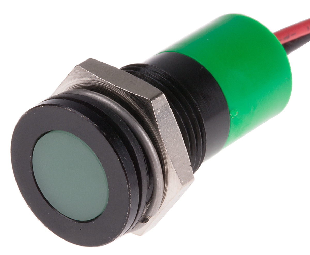This is Green LED Indicator 6 → 36 V dc 10 mm Lamp Size 14mm Mounting Hole Size IP67 manufactured by RS Pro. The manufacturer part number is 703-9099. Regarding light output colour, it outputs green light colour. The product has a current rating of 20ma. In addition, It features 14mm of mounting hole size. It is IP rated with ip67. Moreover, the product has a nominal 6 → 36v dc voltage rating. The given intensity of the product is 5mcd. Its accurate length is 30.6mm. The bezel features a flush style. The product is designed with a lead wires termination. It is a type of led lamp.