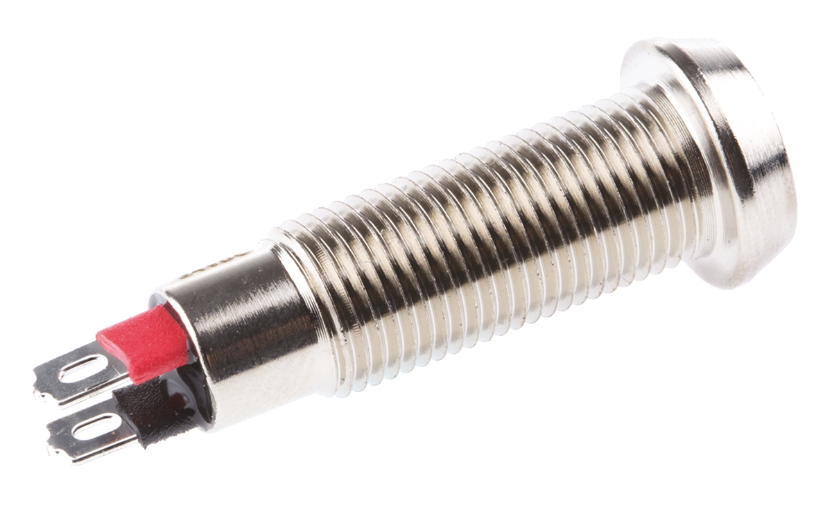This is Green LED Indicator 24 V dc 7 mm Lamp Size 8.1mm Mounting Hole Size manufactured by Marl. The manufacturer part number is 508-532-22. Regarding light output colour, it outputs green light colour. The product has a current rating of 20ma. In addition, It features 8.1mm of mounting hole size. It is IP rated with ip67. Furthermore, the bezel has a classic chrome colour. Moreover, the product has a nominal 24v dc voltage rating. Its accurate length is 33mm. The bezel features a recessed style. The product is designed with a solder tab termination. It is a type of led lamp.