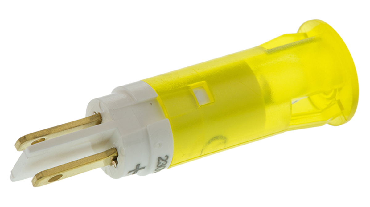This is Yellow LED Indicator 230 V 12 mm Lamp Size 10mm Mounting Hole Size manufactured by Signal Construct. The manufacturer part number is SKGU10128. Regarding light output colour, it outputs yellow light colour. The product has a current rating of 2.5ma. In addition, It features 10mm of mounting hole size. Moreover, the product has a nominal 230v voltage rating. Its accurate length is 38mm. The bezel features a flush style. It is a type of led lamp.